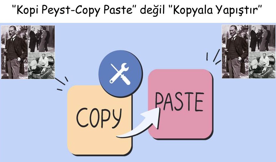 Ancak ülkemizde, İngilizce veya yabancı kelimeleri dillerine pelesenk eden bir grup buna “Kopi Peyst- Copy Paste” demeyi adet haline getirmişlerdir. Kopi peyst diyen birçok insana yaz desek % 80’inin hatalı veya söylediği gibi yazacağını düşünüyorum.